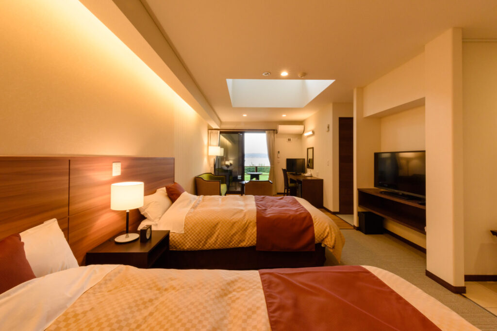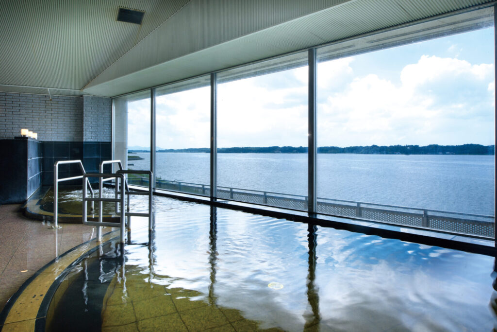 つるつるぬるぬるとした独特の湯感で、入浴すると肌がすべすべになります。浴場からは涸沼湖畔を一望できます。涸沼に沈む夕日は絶景です。